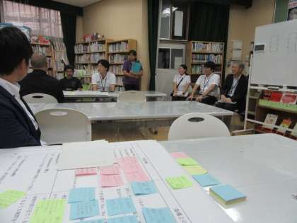 研究協議では、付箋を用いて様々な感想や意見が飛び交い、他教科の先生も自分の授業を見つめなおすいい機会となりました。