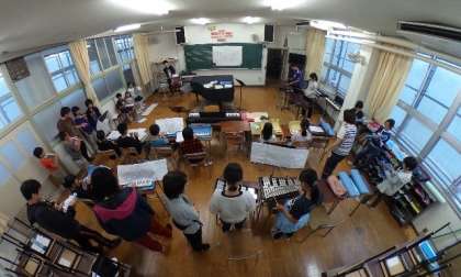 自分の担当の楽器の練習を頑張りました。最後に全員で音合わせ。