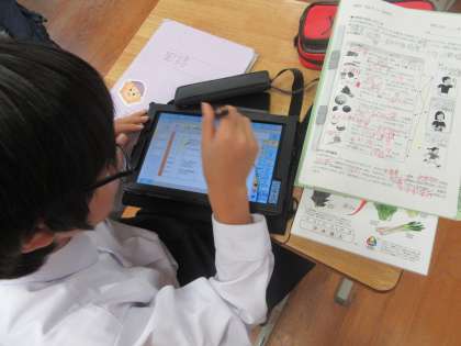 一人一人、タブレットを手に熱心に取り組んでいました。