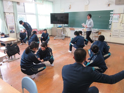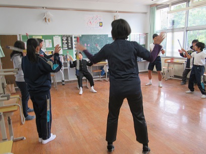 柔軟から始まり、学年ごと教室で、うまくできたり、失敗したりしながら、声を出し、励まし合いながらプロクラムをこなしていきました。今日のプログラムテーマは、「不器用な子どもが変わる。」でした。