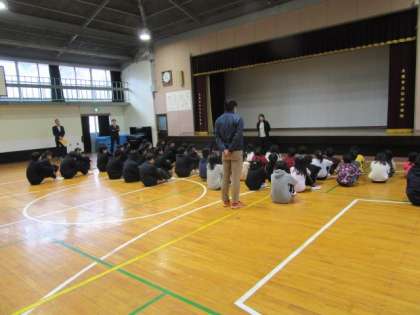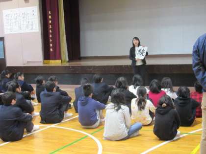 先日、今年1年の世相を漢字一文字で表す「今年の漢字」として「令」の文字が選ばれたことを紹介され、教頭先生自身は1年を振り返り、昨年から引き続いて、この弘済小中学校で仕事をし、毎日の習慣を継続して日々を送っていることから今年1年を「続」という漢字で表現されました。