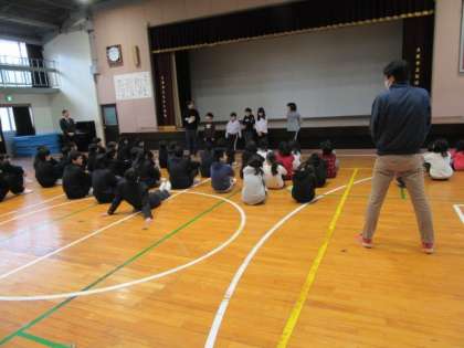次に、今週の生活目標の発表を清水先生と3年生の子どもたちがしました。