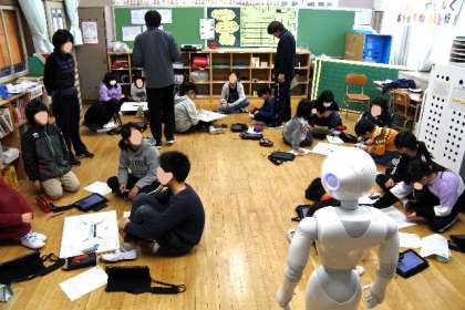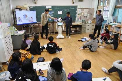 弘済小学校にPepperくんがやってきて、子どもたちは大喜び。