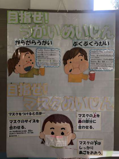 手の洗い方・マスクのつけかた・うがいの