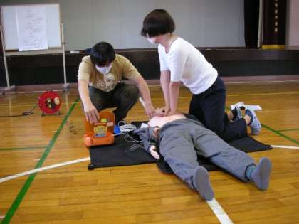 できるだけ現実に近いイメージをもって、発見から救急車到着までの手順を確認しながら練習をしました。
