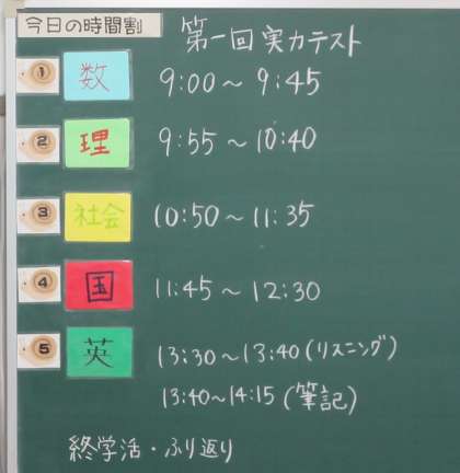 今日6月19日(金)に今年度の第1回3年実力テストが行われました。休校期間が長かったため、どれくらい実力が発揮できたかわかりませんが、ほとんどの生徒はどの教科も時間いっぱい真剣に取り組んでいました。最後まで解けた生徒も終了のチャイムまで見直しをしていて、途中で諦めて伏せてしまう生徒はいませんでした。
