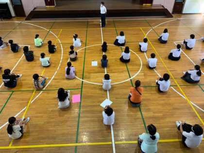 今日の全校集会では、校長先生から土曜授業の振り返りのお話がありました。