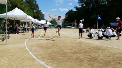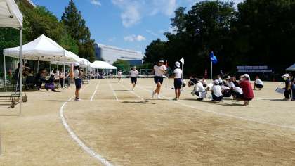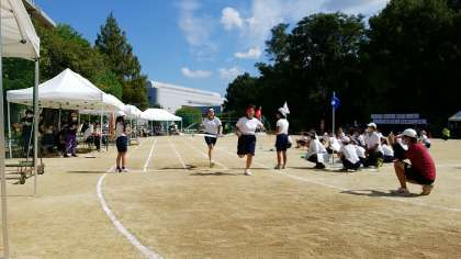 紅組と白組の2組対抗で、生徒数も少ない本校では、ほとんどのレースが1vs1の対決となる100m走。走るのが苦手な生徒からすると『あ〜あ、どうせ負けるのわかってるから走るの嫌やなぁ』となりそうなものですが、どれだけ差をつけられても、みんな決してあきらめることなく、最後まで全力で走っていたのが印象に残る各レースでした。