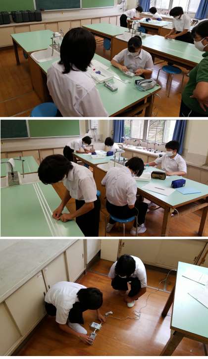 (写真1〜3枚目…3年生の理科の授業。一生懸命、物理の実験をしていました。)