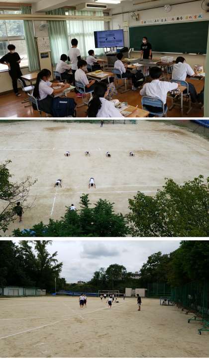 (写真5〜6枚目…1年生の体育の授業。互いに励ましの声を掛け合いながら短距離走に全力で取り組んでいました。)