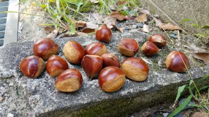 3枚目の写真は、中学部の生徒が昼休みに広い集めたクリを「インスタ映え」するように並べてくれたものです。すいません、カメラマンが技量不足なもんで、全然、「映え」てませんね…。