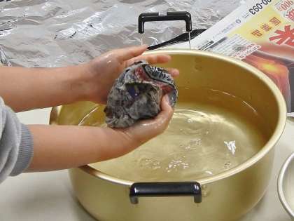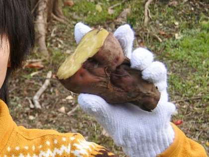 午前中、自分たちで準備をしたアルミホイルに包まれたさつまいもを