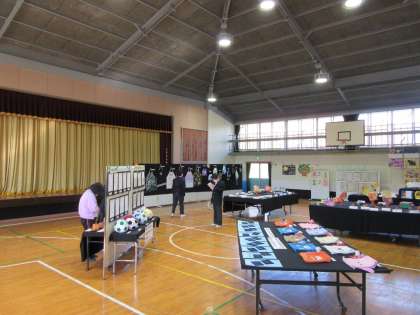 小学校は家庭科・図画工作などの時間で作った作品を展示
