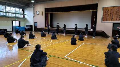 冒頭の写真は、朝の生徒集会の様子です。以前に受験した漢字検定の結果発表と表彰が行われました。校長先生からも「”合格だったからいい”、”不合格だったからダメ”ということではなく、目標に向けてそれぞれが努力を重ねられたのであれば、それでいいんですよ」というお話がありましたが、合格・不合格、いずれの結果であっても、今後もそれぞれに努力を重ねていってくれればと思います。