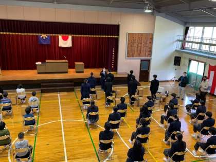 朝からやわらかい日差しが降り注いでいます。日ごと春の近づきを感じます。いよいよ明日は卒業式です。今日は予行が行われました。小学部、中学部ともに体育館に集まり、静かな緊張感が立ち込めます。小学6年生に続き中学3年生が担任の先生の先導で入場しました。みんなの引き締まった表情、凛々しく歩く姿に大きな成長を感じました。見ているだけでうれしい気持ち、ちょっぴり寂しい気持ち・・・予行は上手くできました!