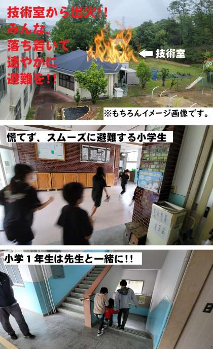 本日5限に実施された、火事に対する避難訓練の話、つまり大まじめな話です。