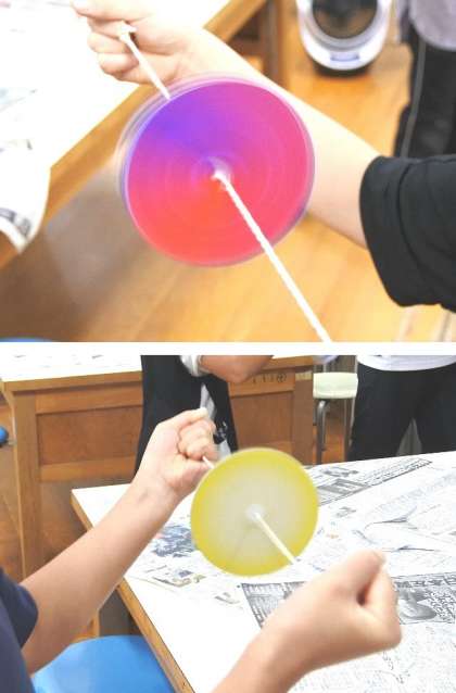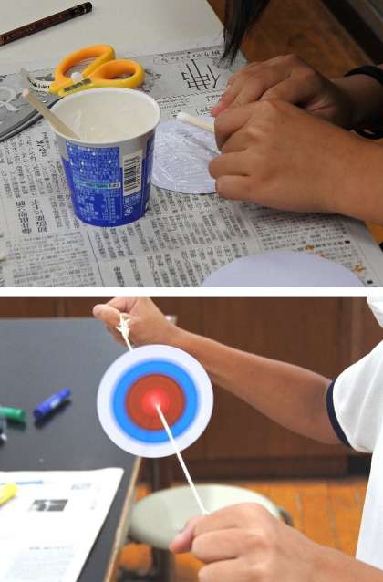 1年生から4年生で、「びゅんびゅん駒づくり」をしました。