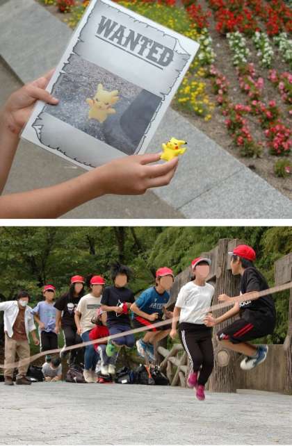 花壇のエリアで、小さなピカチュウのフィギュアを探すチェックポイントが人気でした。