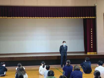 いつもは月曜日に行われている全校集会ですが、今週は芸術鑑賞会が行われていたため、本日の実施となりました。