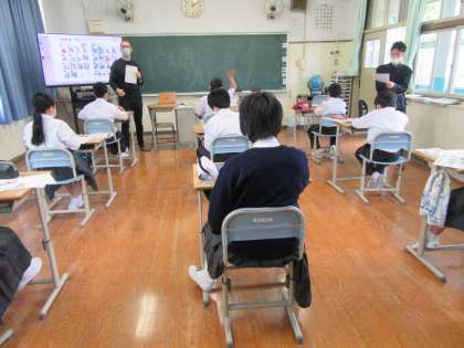 今日、中学部では1年生と2年生がC-NETの先生と一緒に英語を勉強しました。