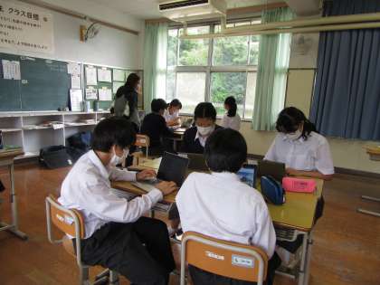 2年生の国語では、タブレットを使ってプレゼンテーションの準備をしました。その後、各班で発表をし、みんな積極的に取り組んでいました。