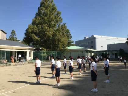 練習の前には、校長先生から「季節の変わり目でもあるこの時期、体調には特に気を付けてほしいです。少しでも自分の体調に変化があれば、自分自身で周りの大人に伝えることを必ずしてください。また、運動会の練習では”One for ALL, All for One!(1人は全体のために、全体は1人のために)”という言葉にあるように、協力し、周りを見て行動することが非常に大切です。今日も暑いですが、頑張りましょう!」と激励の言葉をいただきました。