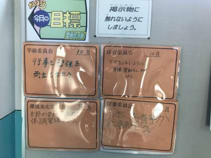運動会まであと6日です!まだ9月ではありますが、先日、各委員会で立てた10月の目標も意識しながら、生活を送っていって欲しいです!