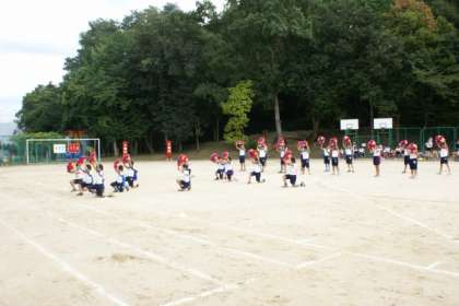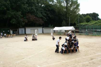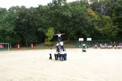 運動会で、小学生は花笠音頭を中学生は組体操をしました。集中してしっかり演技することができました。