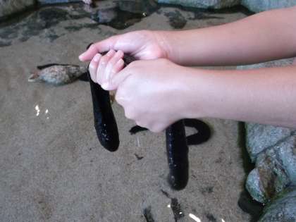 宮島水族館を見学しました。きれいな魚やカブトガニを見て驚く様子が見られました。ナマコを触って嬉しそうにしている姿が印象的でした。水族館の後にはお土産タイムです。もみじまんじゅうやキーホルダーを買いました。自分で計算して、お小遣い金額ピッタリに買うことができた児童もいました。