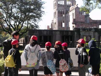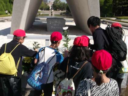 2日目には、平和記念公園に行きました。事前に学習した原爆ドームや慰霊碑を真剣な表情で見つめる様子が見られました。原爆の子の像では、学校のみんなで作った千羽鶴とレリーフを捧げてきました。資料館での見学も通して、戦争の恐ろしさや命の大切さ、自分たちにできることをそれぞれが感じることができたようです。
