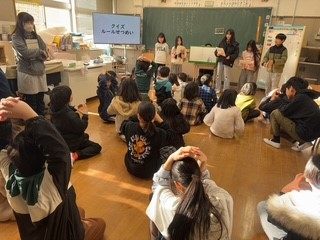 クイズでは○×クイズを行い、聞いている子どもたちも手で〇や×をしており、楽しそうでした。