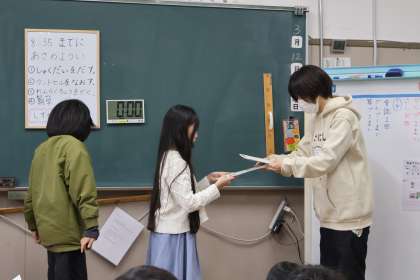 3学期、子どもたちのチャレンジした頑張りを称えて、担当の先生から表彰状が手渡されました。