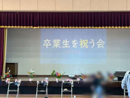 昨日は、小学校六年生への卒業お祝い会でした。一年生から五年生の児童が、たくさんの時間を使って、美味しい食べ物やゲームを準備してくれました。六年生もお礼を用意してくれました。