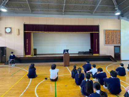 最後に、校長先生は、「選ぶ責任、そして選ばれた人はみんなの代表という責任をもって学校をよりよくしていってほしいと思います。また、生徒会だけでなく、みんなの力を合わせて自立に向けて取り組みましょう!」という校長先生の話で締めくくられました。