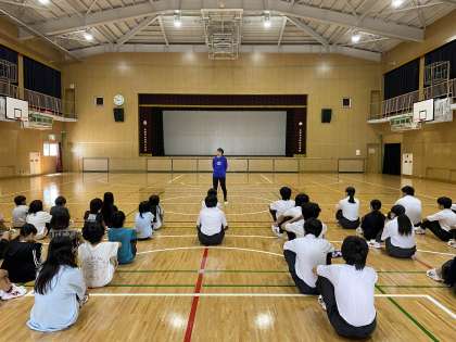 保健体育科の横江先生は、「中学校、高校時代、陸上部で、走ることが趣味です。」との自己紹介の後、昨日のブルーインパルス飛行について触れ、「『1いろいろなことに興味を持つ。2そのことについて自分で調べてみる。』ということを、ぜひ、夏休み中、やってみてください。」と話されました。
