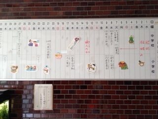 本校では、玄関を入ってすぐのところに行事予定を掲示しています。