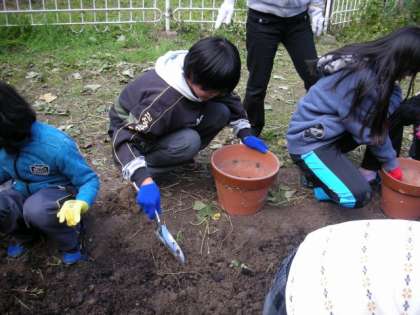 11月10日に、小学生がチューリップの球根を植えました。毎年吹田東ライオンズクラブの方から球根を寄付していただいています。今回も春にきれいな花がさいてほしいです。
