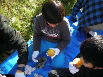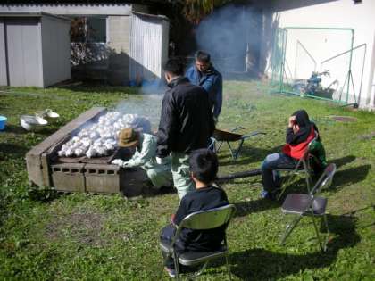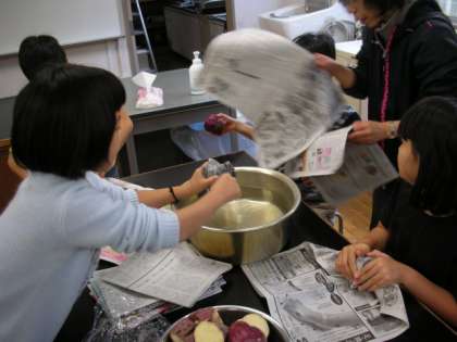 11月25日に小学校でやきいもをしました。11月7日に収穫したさつまいもを使いました。自分たちでいもに、水につけた新聞紙とアルミはくをまいてかまどにのせました。管理作業員さんに手伝っていただき、焼きました。自分たちで育てて収穫したさつまいもはとてもおいしかったです。