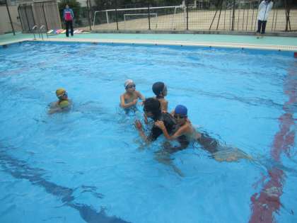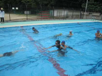 授業とは少し違った雰囲気の中、学習もプールでの活動も頑張っています。