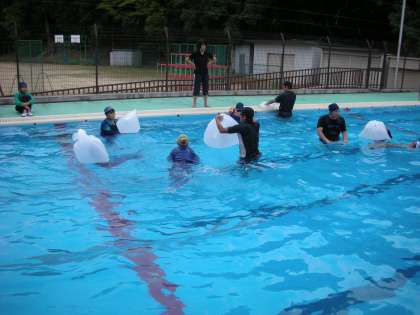 「服を着た状態で水に落ちたら何ができるのかを体験を通して身に付ける」