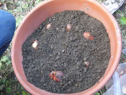 チューリップの球根植え