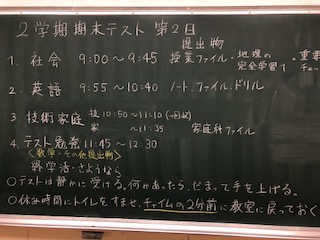 中学校では、11/29〜12/01の日程で、2学期期末のテストを行いました。