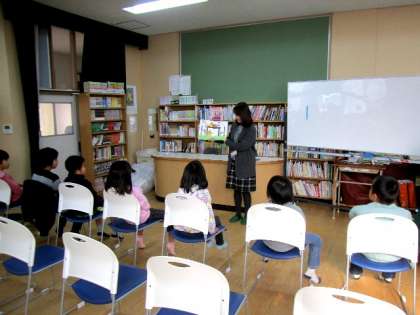 大阪市立北図書館、大阪市立中央図書館から2名の司書の先生に来ていただき、絵本を中心に読み聞かせを行っていただきました。