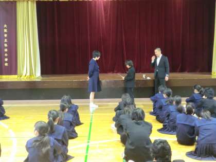 学級委員会では2学期にもこの目標を掲げ、状況を確認するため調査を行ってきました。その結果、2年の授業遅刻が特に少なかったので、表彰することにしました。今後も調査を続け、頑張った学年は表彰しようと考えています。