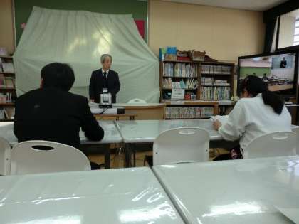 また、放課後はテレビ会議システムを活用して分校の先生も参加し、道徳の教員研修を行いました。来年度からは小学校が、再来年度からは中学校の道徳が教科化されます。それに向けて道徳の評価について芝田先生よりお話をいただきました。