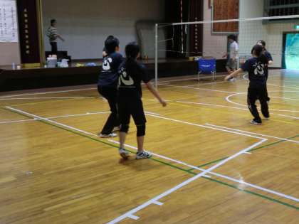 「そこっ!」「いいぞっ!」「もう一球!」「ナイスッ!」顧問の先生と子どもたちの熱気のこもったラリーが続きます。まずは今週末,中学校体育連盟の試合での勝利を、そして7月14日の児童福祉施設連盟の大会での優勝をめざして頑張っています。みんな心をつないで、壁を乗り越えろ!