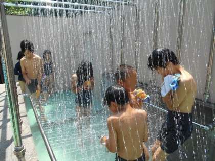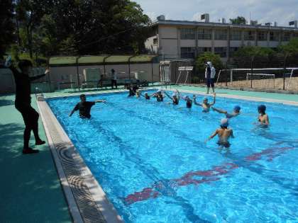 学校の大きなプールに初めて入る子どもも何名かいましたが