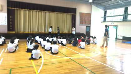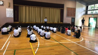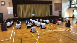 本日の全校集会では、山口教頭先生が先日の大雨や地震について、みんなで助け合うことの大切さをお話しされていましたが、子どもたちはしっかりと三角座りをしてお話を聞くことができました。