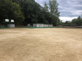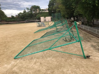 また、グラウンドの防球ネットも倒しました。これは昨日、野球部の生徒が手伝ってくれました。