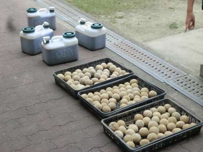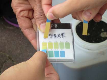まずは、7月に作成したEM発酵液のPHを測定しました。PHが3.5以下ならOKです。